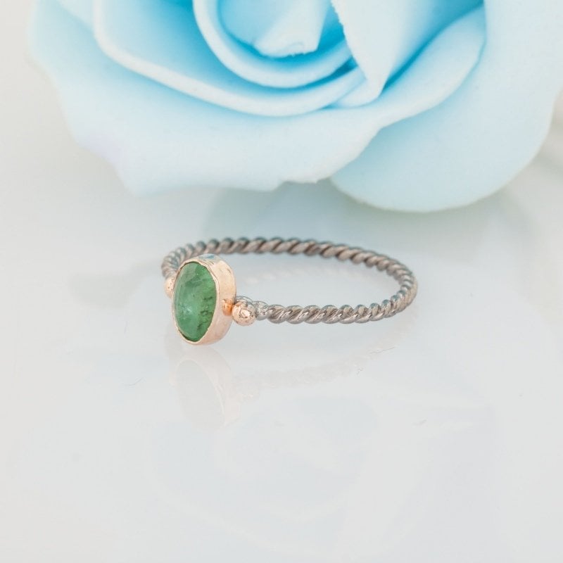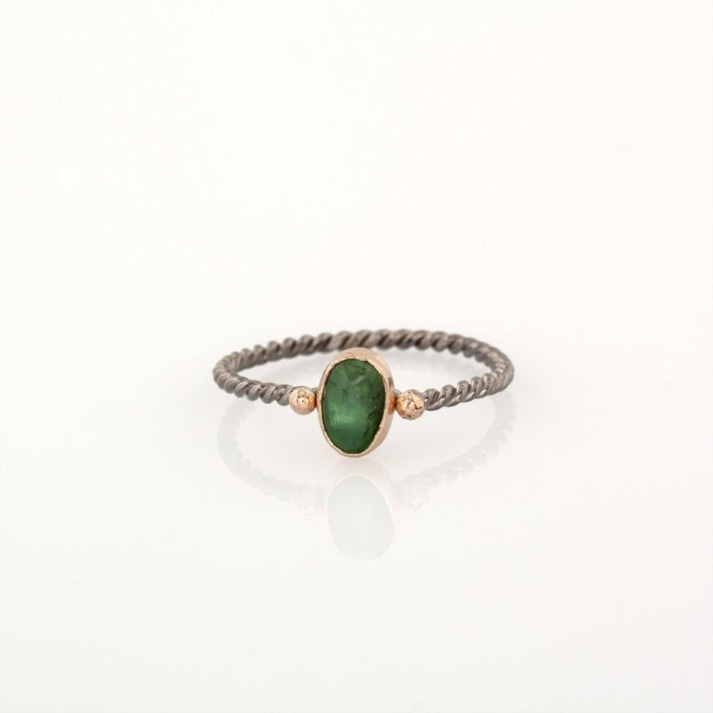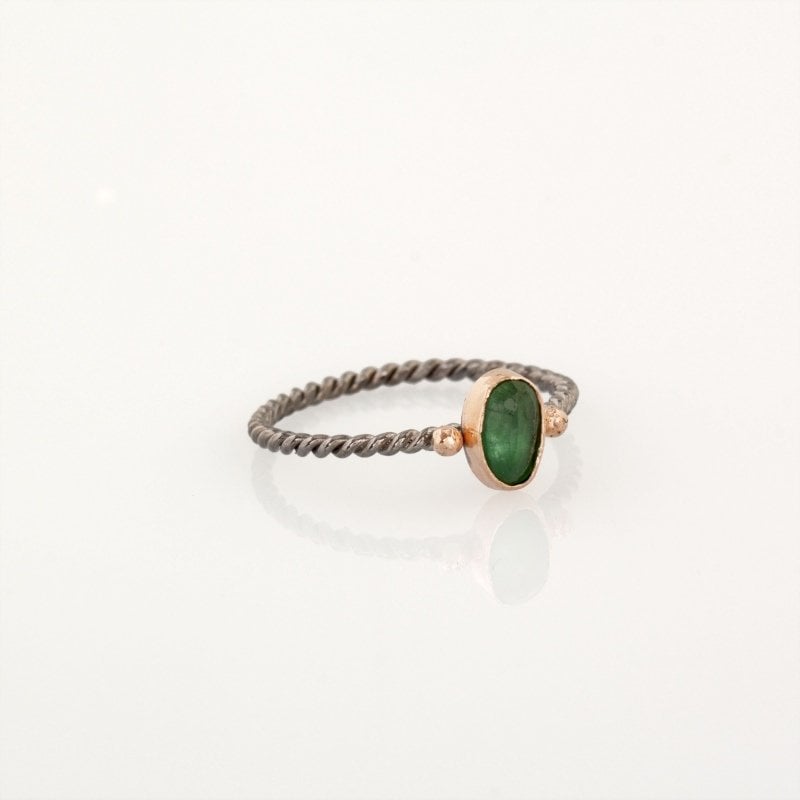 Zümrüt Taşlı El İşi Minimal Gümüş Yüzük